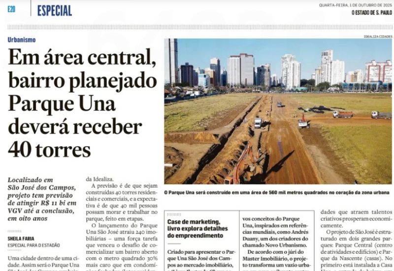 Uma cidade dentro de uma cidade. Assim será o Parque Una São José dos Campos, um bairro planejado completo e diferenciado, segundo a Idealiza Cidades, criadora do projeto. Um bairro que acabou de nascer e já é premiado.